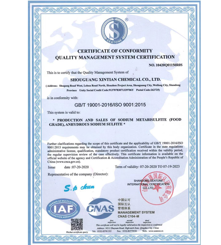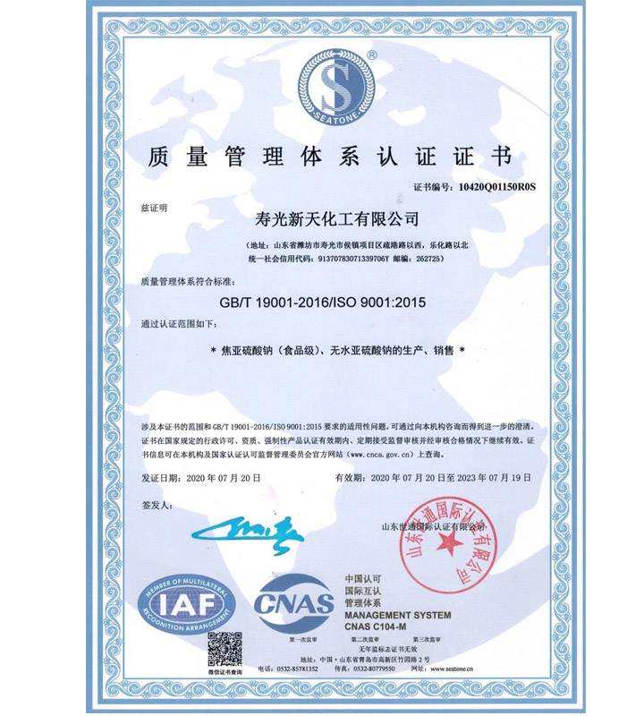 Located in the Marine Chemical Industrial Park of Hou town of Shouguang City at the side of Laizhou Bay, our company enjoys a superior geographical location and convenient transportation for we are 150km from Qingdao Port in the east, 22km from Weifang Port in the north, and 5km from Weiri Expressway and Rongwu Expressway in the south. As a comprehensive enterprise integrating production and sales, we now mainly produce sodium metabisulfite (main content 97% & above), anhydrous sodium sulfite (main content 98%), sodium bicarbonate (baking soda), sodium bisulfite (main content 99.9%...